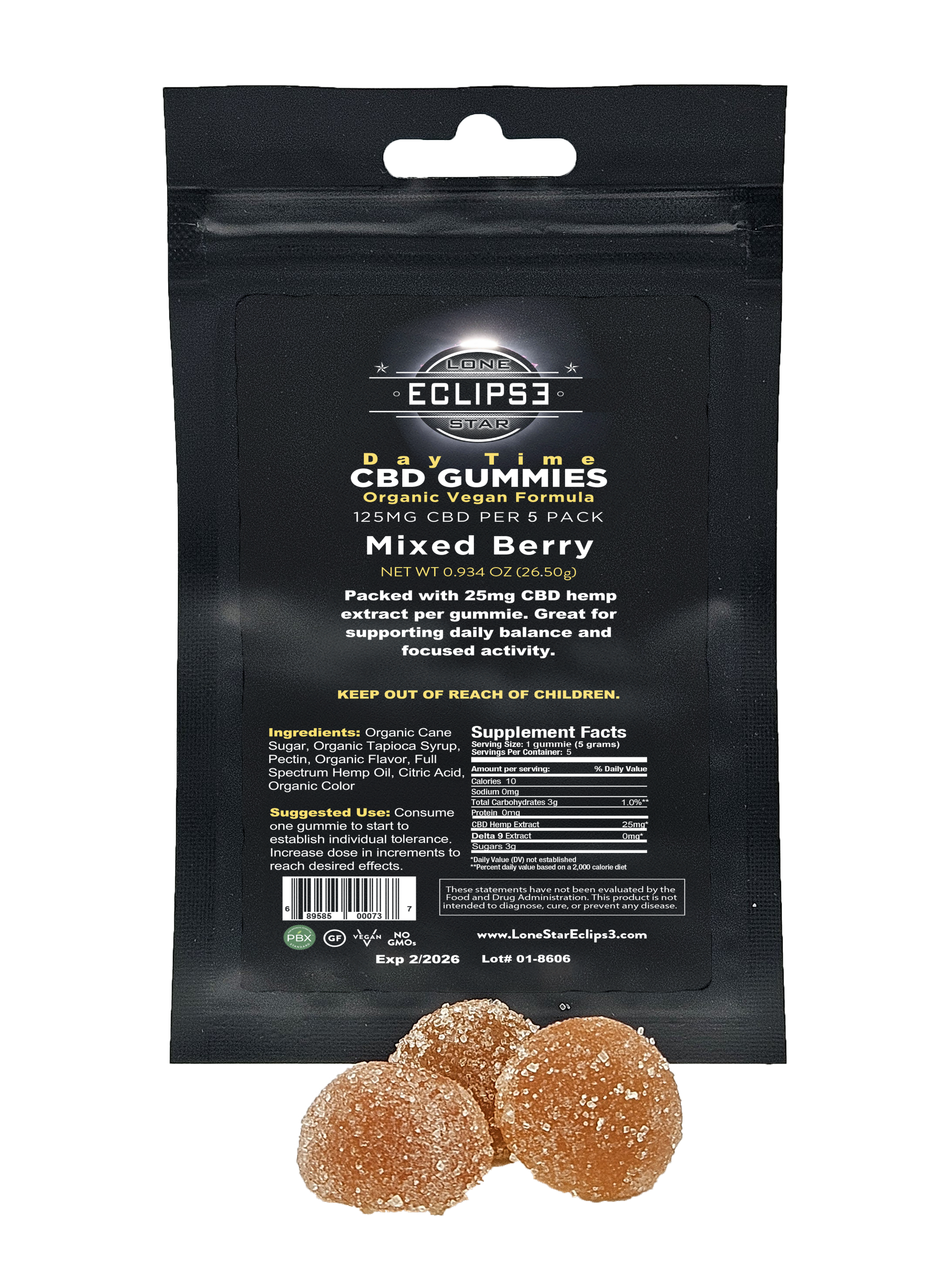 - 25mg CBD + 10mg THC per gummy